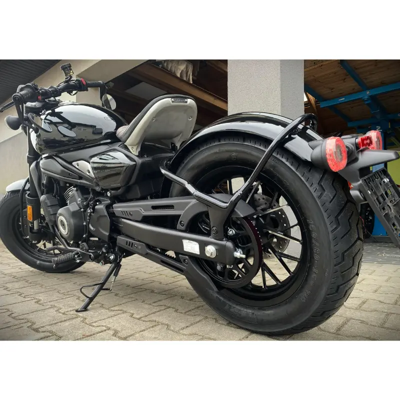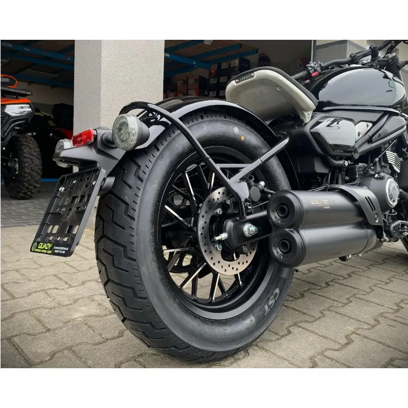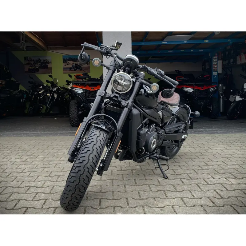 Motocykl CHOPPER 450CL-C BOBBER to stylowy bobber oparty na modelu 450CL-C, łączący klasyczny design z nowoczesnymi rozwiązaniami. Napędzany 449 cm³, dwucylindrowym silnikiem o mocy 40 KM, zapewnia dynamiczną jazdę, a aluminiowe, jednoosobowe siedzenie zmniejsza wagę i poprawia komfort. Retro detale, takie jak szczotkowane aluminium i tekstura Pinstripe®, podkreślają unikalny charakter tej maszyny. Z wagą 177 kg i kompaktowymi wymiarami to idealny wybór dla miłośników stylu bobber.