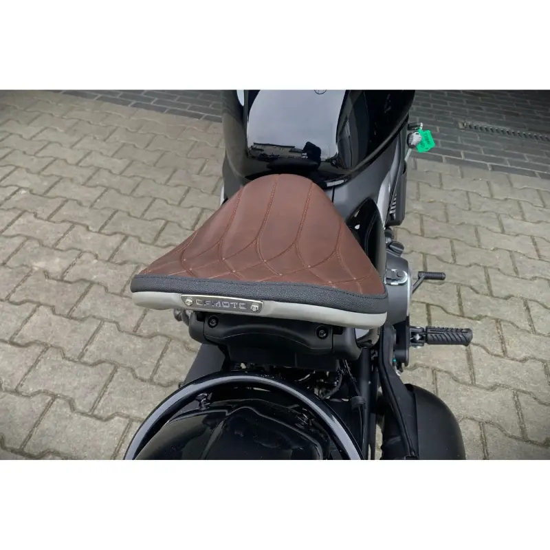 450CL-C BOBBER to model w stylu BOBBER, który został zmodyfikowany na bazie 450CL-C. Jego unoszone, jednoczęściowe solo-siedzenie typu soft-tail wykonano z odlewanego ciśnieniowo stopu aluminium, co skutecznie redukuje masę, jednocześnie zapewniając wytrzymałość i odporność na odkształcenia. Każdy detal wyróżnia ten motocykl – od szczotkowanego wykończenia powierzchni aluminiowej, poprzez proces tekstury retro Pinstripe® na skórzanej powierzchni, aż po plakietkę na tyle i precyzyjne szwy. Wszystkie te elementy podkreślają unikalny charakter 450CL-C BOBBER.