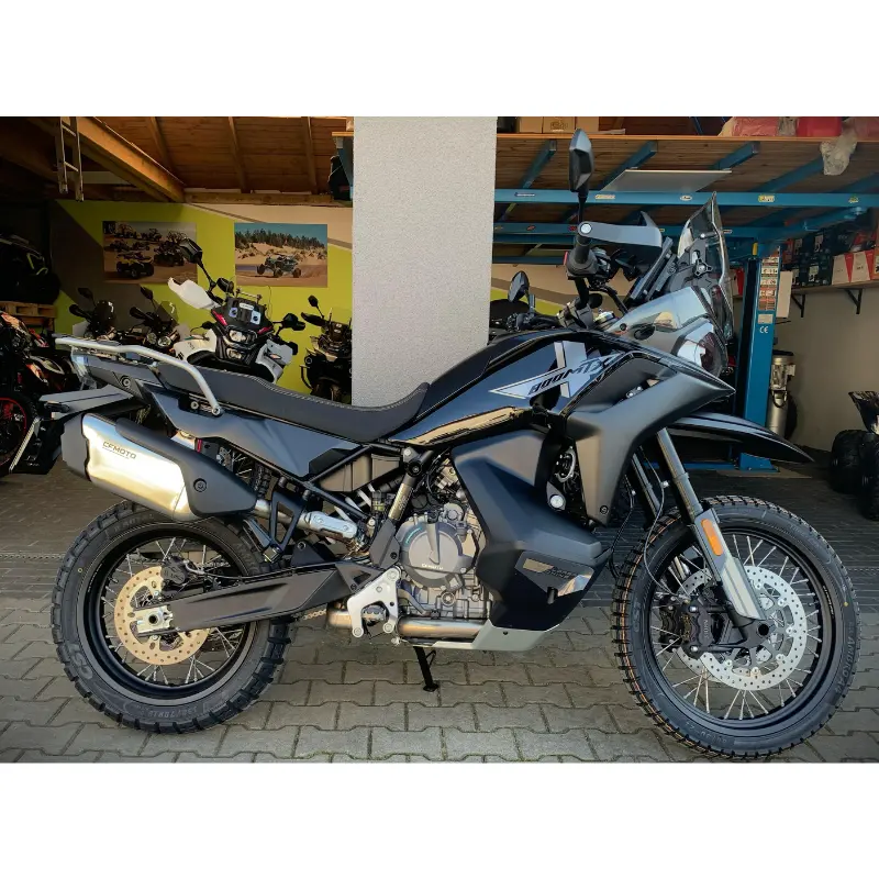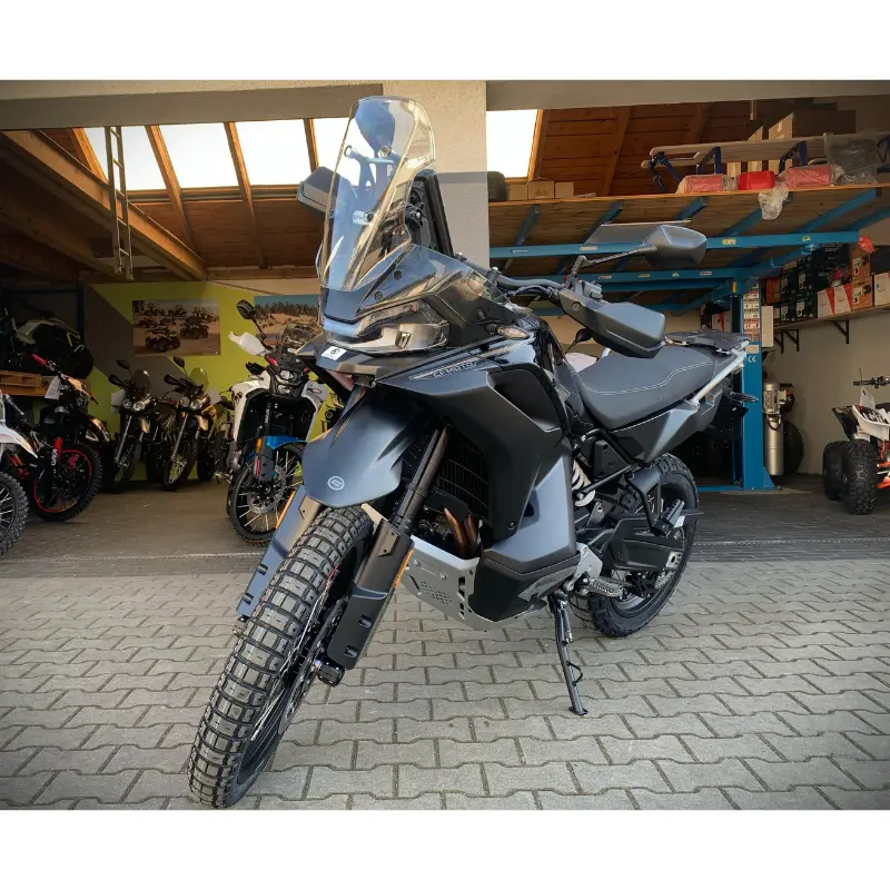 Motocykl CFMOTO 800MT-X to wszechstronna maszyna stworzona z myślą o pasjonatach jazdy turystycznej i off-roadowej. Wyposażony w rzędowy, dwucylindrowy silnik o pojemności 799 cm³ i mocy 95 KM, zapewnia dynamiczne osiągi zarówno na asfalcie, jak i w trudnym terenie. Dzięki nowoczesnym technologiom, takim jak wtrysk paliwa EFI, chłodzenie cieczą, podwójne wałki wyrównoważające i powłoki DLC, motocykl gwarantuje płynną jazdę, zminimalizowane wibracje i cichą pracę silnika. CFMOTO 800MT-X to idealny wybór dla tych, którzy chcą odkrywać nowe trasy bez kompromisów — moc, niezawodność i komfort w jednym.