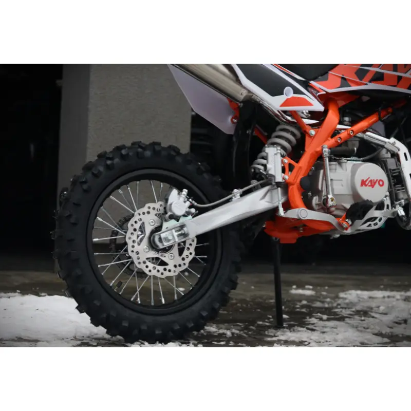Z racji swoich wymiarów i mocy KAYO 140 TT jest polecany dla młodzieży od 12 roku życia i dorosłych. Niezależnie od tego, czy zaczynasz przygodę z pit bike, chcesz startować w zawodach, czy kontynuujesz naukę – ten model to strzał w dziesiątkę i prawdziwy awans do mocnej ligi.