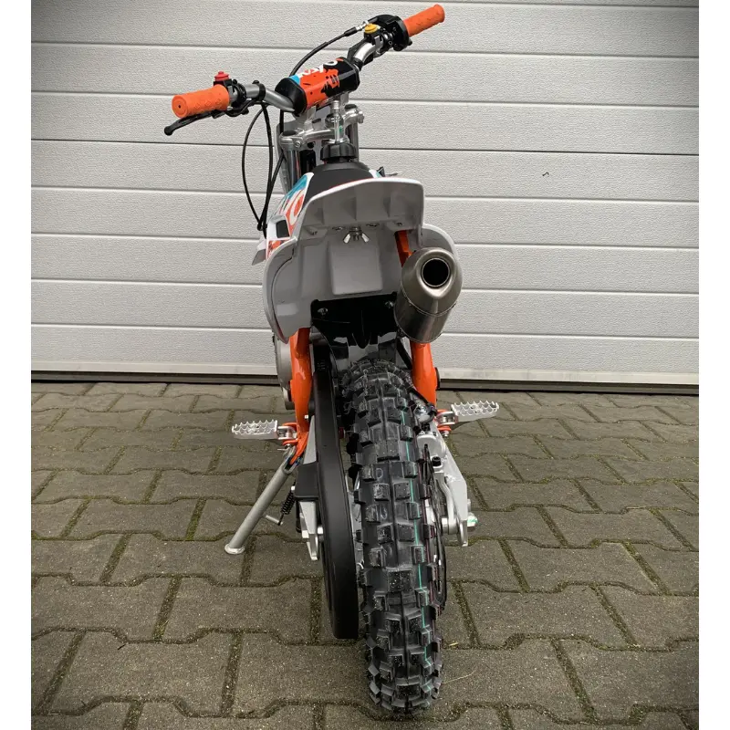 KAYO KMB to doskonały wybór dla najmłodszych miłośników off-roadu. Ten dziecięcy Pit Bike został wyposażony w niezawodny, czterosuwowy silnik 60 cm³ z elektrycznym rozrusznikiem oraz automatyczną skrzynię biegów, co ułatwia naukę jazdy. Motocykl waży jedynie 42 kg, a wysokość siedzenia wynosi 55 cm, dzięki czemu jest idealnie dopasowany dla dzieci do 6 lat. Bezpieczeństwo zapewniają hydrauliczne hamulce tarczowe oraz możliwość montażu kółek bocznych. Terenowe opony 10” gwarantują świetną przyczepność w każdych warunkach. KAYO KMB to budżetowy i bezpieczny wybór dla małego rajdera!