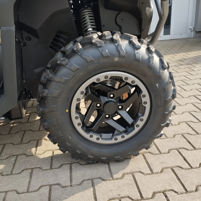 Model ten został wyposażony w niezależne zawieszenie na wszystkich kołach, co przekłada się na doskonałą przyczepność, stabilność i komfort jazdy – zarówno w terenie, jak i na utwardzonych nawierzchniach. Za bezpieczeństwo i skuteczność hamowania odpowiadają nowoczesne tarczowe układy hamulcowe.