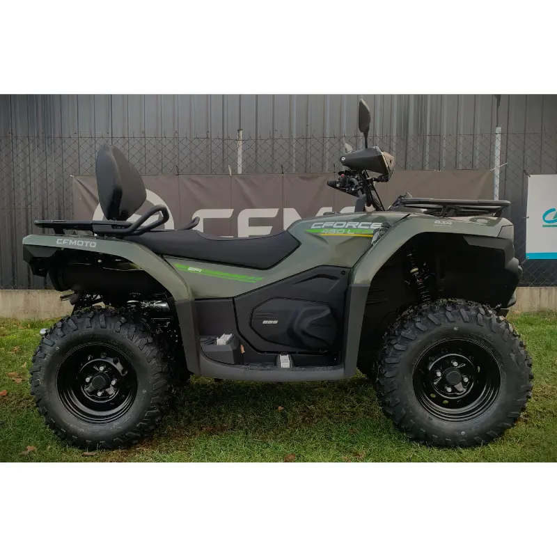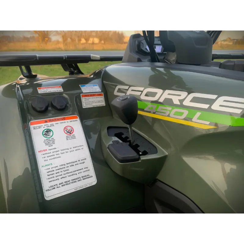 CFORCE 450 L to pojazd wyposażony w jednocylindrowy, chłodzony cieczą, 4-suwowy silnik SOHC z czterema zaworami, o pojemności 400 cc. Generuje moc 31 KM, co zapewnia dynamiczną i płynną jazdę. Quad ma wymiary 2386 x 1125 x 1205 mm i waży 350 kg, co czyni go stabilnym i wytrzymałym na różne warunki terenowe. Dodatkowo spełnia wymogi homologacji T3B, co pozwala na legalne poruszanie się po drogach publicznych.
